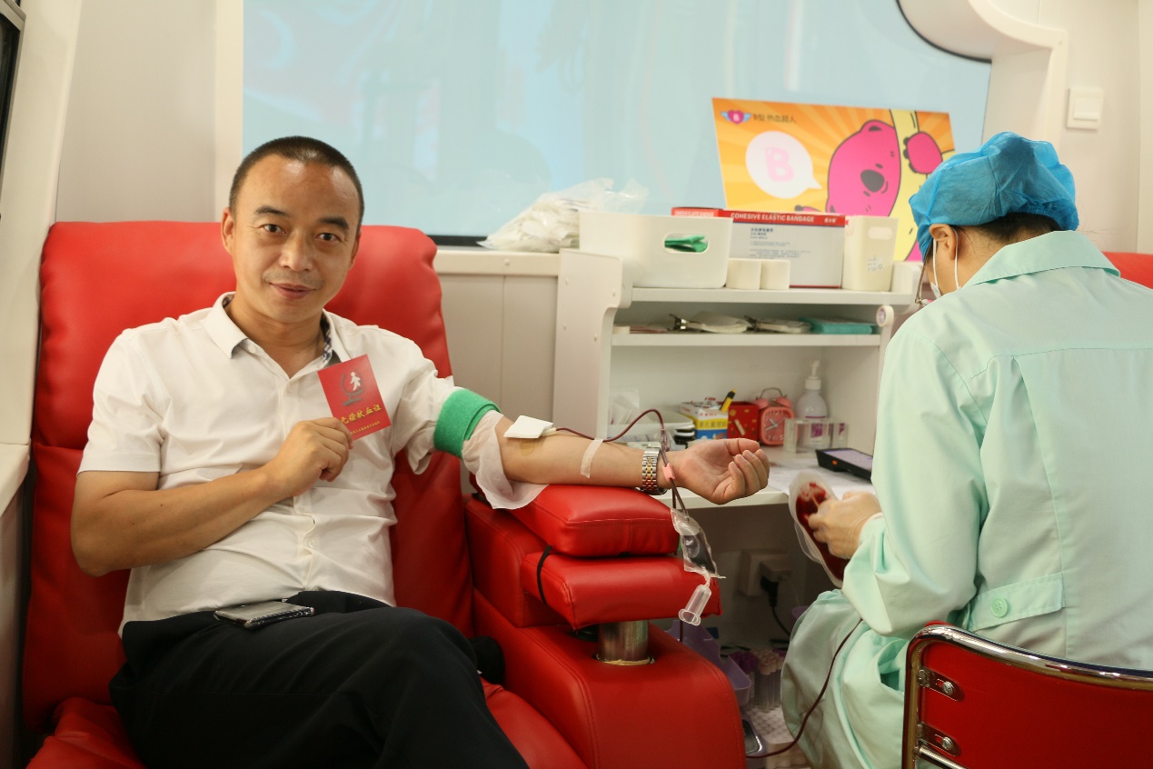 排队、填表、体检、化验……大家精神饱满、热情高涨,积极配合医务人员,有条不紊地完成各项采血准备工作。小小车厢内爱心传递,大家撸起袖子,殷红的血液缓缓流淌,一个个血袋便汇成生命的海。
